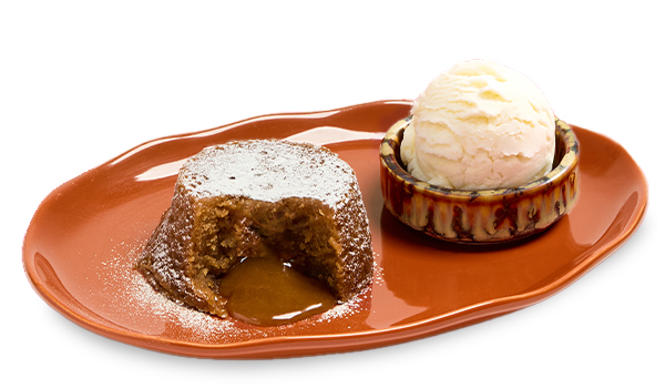 Choice of chocolate, pistachio or salted caramel pudding with gooey lava centre, served warm with vanilla gelato